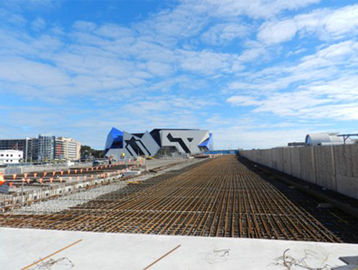 We supplied in excess of 10,000t of reinforcement to the Perth City Link Rail Alliance (a joint venture between PTA, John Holland and GHD) between November 2011 and December 2013. The project included the supply of 1835t of prefabricated D-Wall Cages and 1287t of Cage Piles along with 50,000 Dextra Rolltec Couplers used to connect the roof and floor slabs, all of this fabrication work being carried at an offsite facility in Henderson and delivered to site ready for installation.